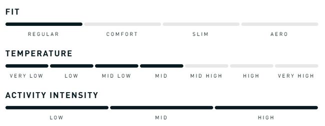 Coolvent — численні канали пронизують внутрішню поверхню матеріалу, забезпечуючи постійний потік повітря. Матеріал швидко вбирає піт, охолоджує тіло під час рухів і зберігає шкіру комфортно сухою завдяки своїм характеристикам, що «дихають».