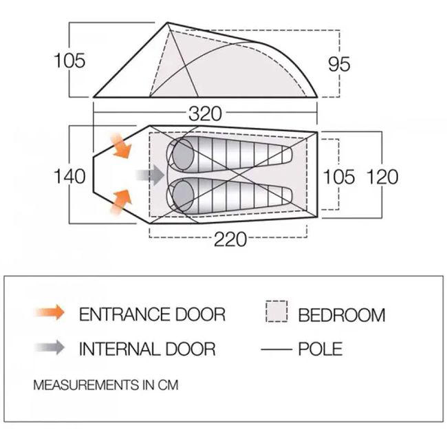 | Зовнішній тент | Protex 70D (Polyester), 3000 мм в.ст., проклеєні шви. Розроблений ексклюзивно для Vango |