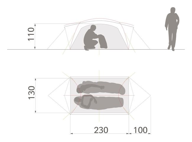 | Зовнішній тент | 100% Polyester 30D Ripstop з двостороннім силіконовим покриттям 3 000 mm |