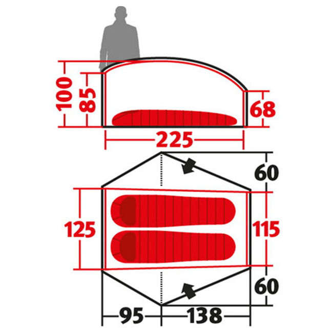 - Внутрішній намет (Д х Ш х В): 225 х 125 х 100 см