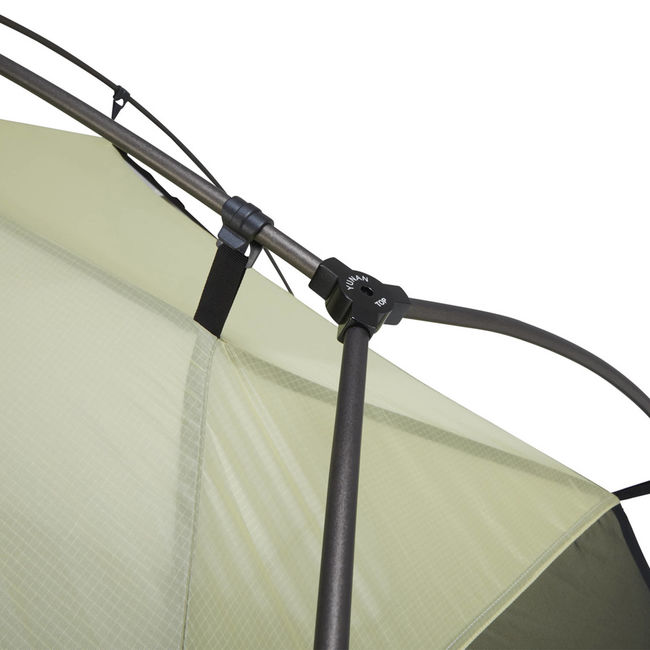 - Фастекси з'єднання внутрішнього намету і зовнішнього тенту розгорнуті таким чином, щоб контроль натягу тенту можна було легко зробити однією рукою. Пряжки петель фіксації тенту кілочками також регульовані.