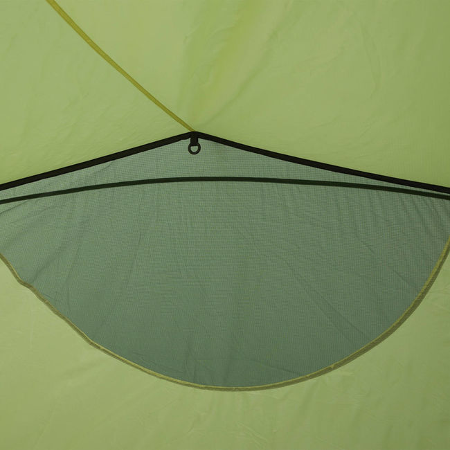 - Намет має 4 вентиляційних клапана APEX, розташованих у верхній третині стінок в кутах намету, а також можливість додаткової нижньої вентиляції з торця намету. Таким чином, забезпечується ефективна вентиляція внутрішнього намету і зовнішнього тенту, запобігається утворення конденсату і регулюється внутрішня температура. Клапана фіксуються жорстким фіксатором на застібці Velcro і не створюють небажаного шуму навіть під поривчастим вітром.