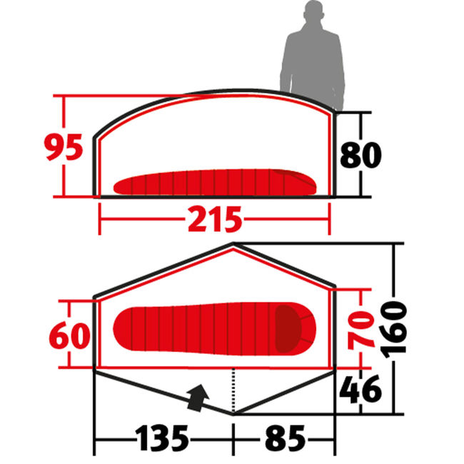 - Внутрішній намет (Д х Ш х В): 215 х 70 х 95 см