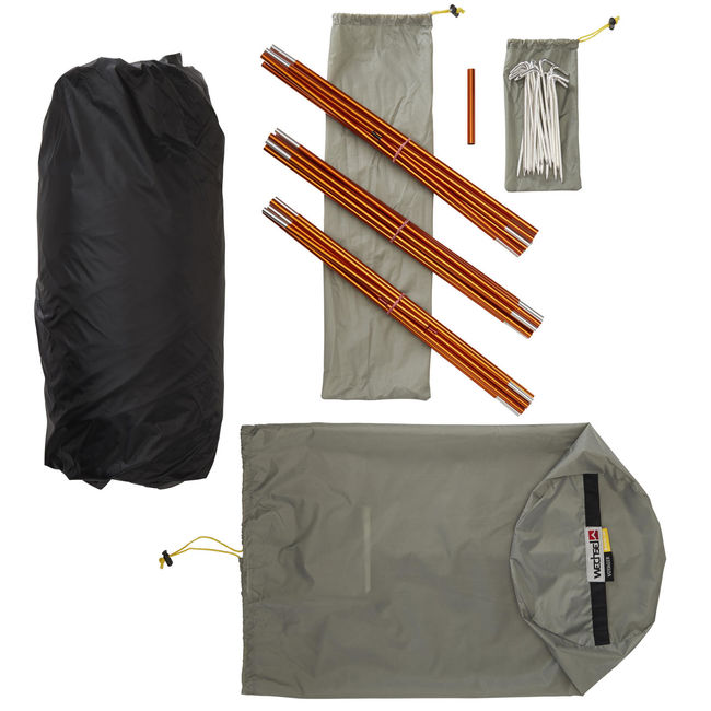 - Матеріал зовнішнього тента: Polyester 68D Ripstop PU DWR, 5000 мм в.ст., проклеєні шви, зміцнююча структура Ripstop, поліуретанове покриття і водовідштовхуюче просочення, щільність - 81г/м², міцність на розрив - 2,5кг.