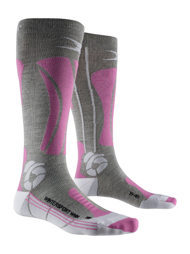 X-Socks Apani Socks Wintersports W — Високотехнологічні термошкарпетки з вовни Apani Merino - першої дійсно інтелектуальної вовни, яка забезпечує максимальний комфорт за холодних умов, не вбирає бруд та неприємні запахи. Шкарпетки оснащені волокном Mythlan®, яке ефективно відводить зайву вологу, завдяки чому забезпечує сухість та захищає від поширення мікробів і бактерій. Запатентовані зони вентиляції по всій поверхні забезпечують всі характеристики, щоробить ці шкарпетки ідеальними для будь-якого лижного туру. 3-ExpandLadiesStripes і Narrow Arrow Construction сприяють ідеальній посадці жіночої стопи.