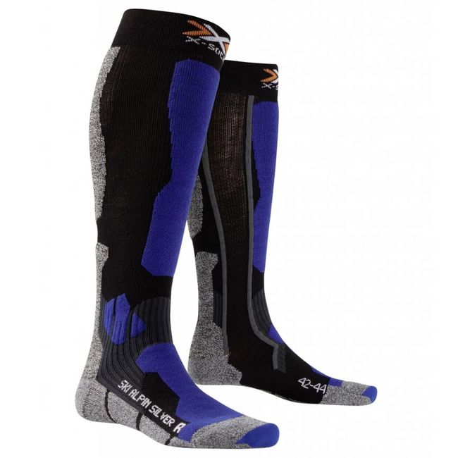 X-Socks Ski Alpine Silver — Високотехнологічні гірськолижні термошкарпетки з унікальними системами вентиляції, підтримки та амортизуючих подушок. У складі мають антибактеріальну срібну нитку. Шкарпетки оснащені волокном Mythlan®, яке ефективно відводить зайву вологу, завдяки чому забезпечує сухість та захищає від поширення мікробів і бактерій. Розроблені з урахуванням анатомічних особливостей ступні та розділені на праву та ліву шкарпетку.