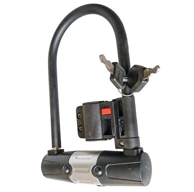 U-замок шириною 160 мм і довжиною 250 мм. Замок застібка-блискавка захищена від бруду. В комплекті є кріплення велозамка на велосипед під час водіння. У комплекті до замка є 2 ключа (один звичайний, другий зі світлодіодним підсвічуванням).